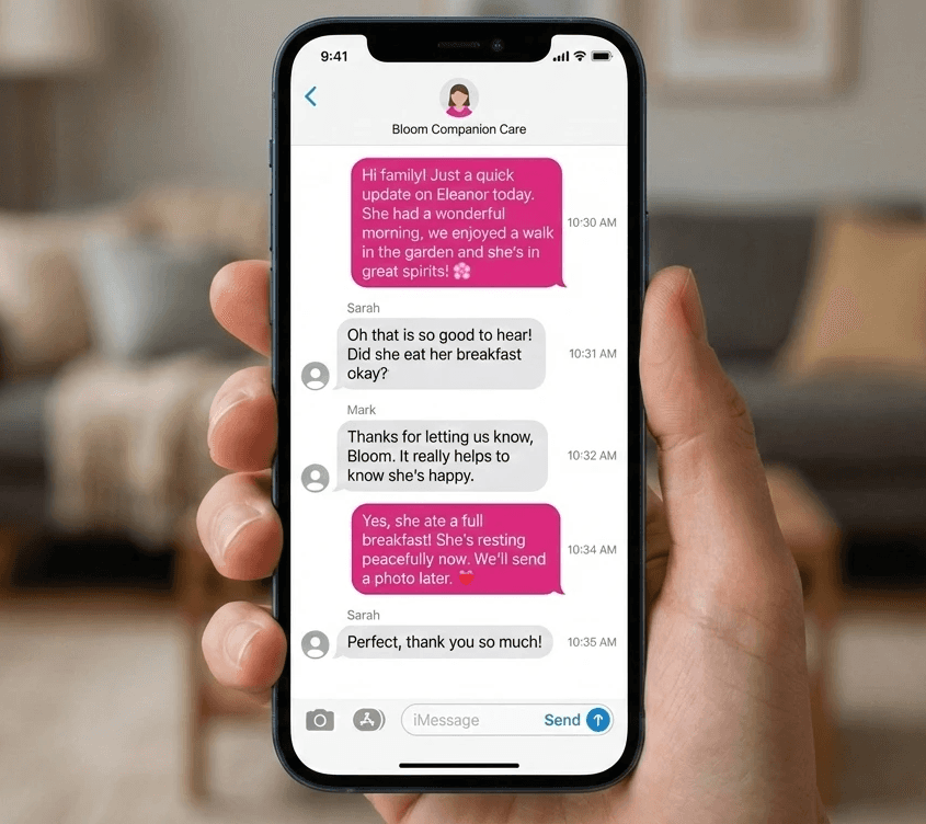 We create simple text threads to give you and your family important updates and show the ongoing care your loved one is receiving.
